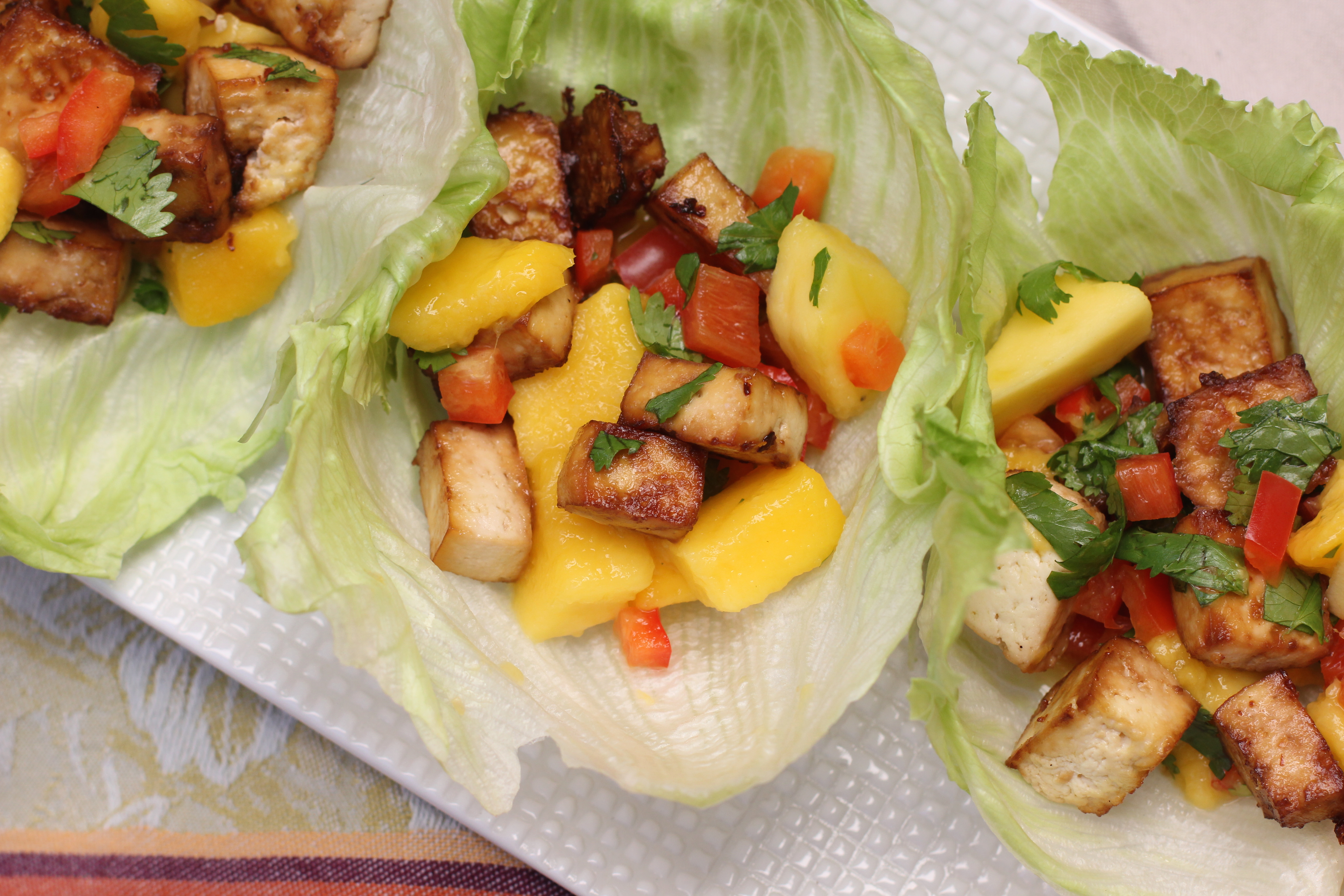 Thai Tofu Lettuce Wraps with Mango Salsa and Peanut Sauce